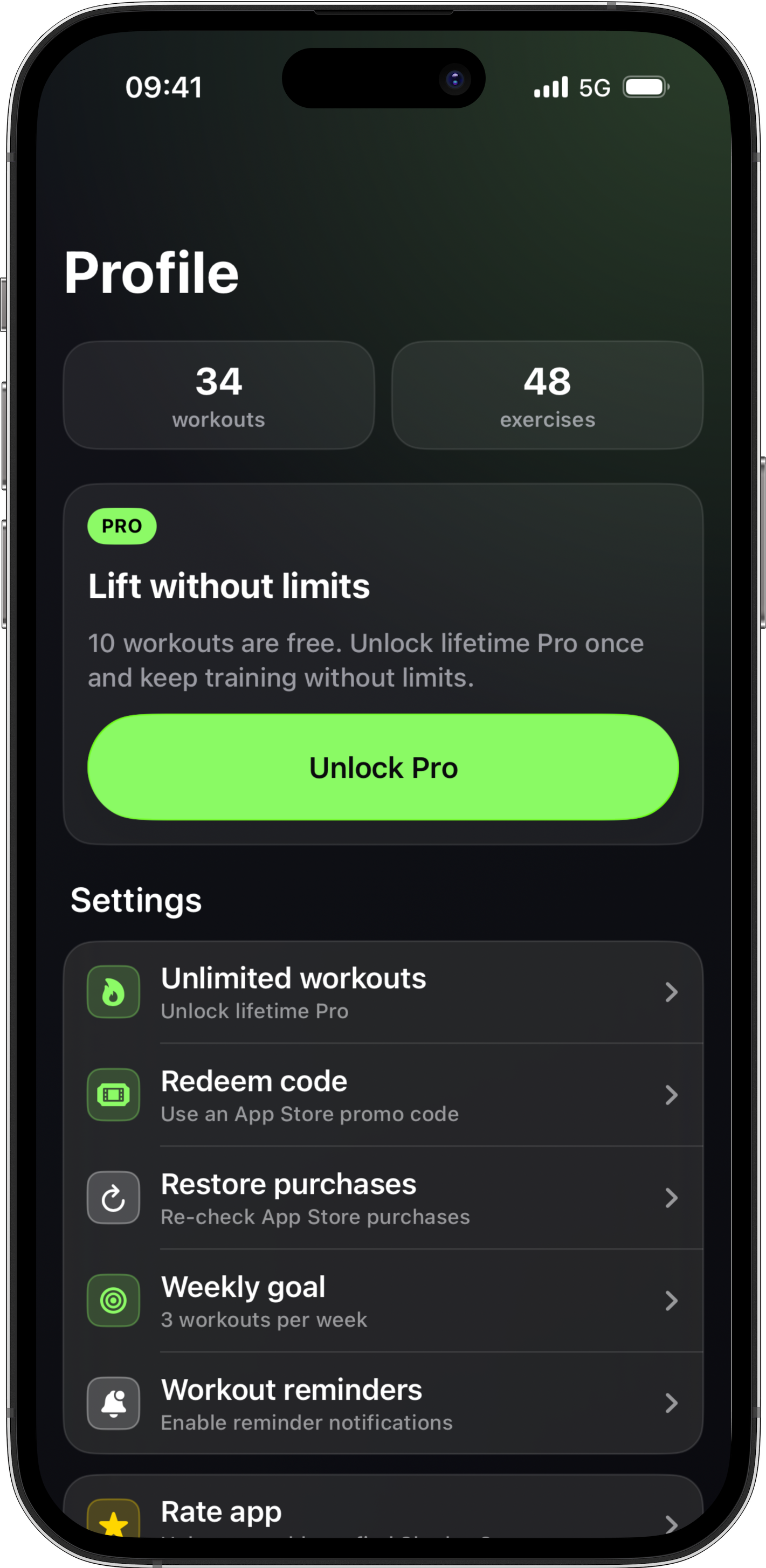 ShadowSets supports optional reminders for users who want a consistency nudge. Notifications are not required to use the app and should be configured by user preference.